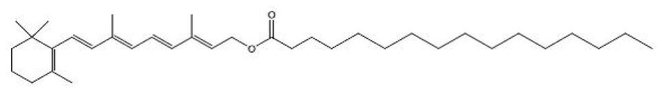 【特性量值】供 HPLC 法测定,按 C36H60O2计,每 1mg 中含维生素 A 棕榈酸酯 0.981mg,其中含全反式维生素 A 棕榈酸酯 98.1%,含顺式维生素 A 棕榈酸酯 1.9%。