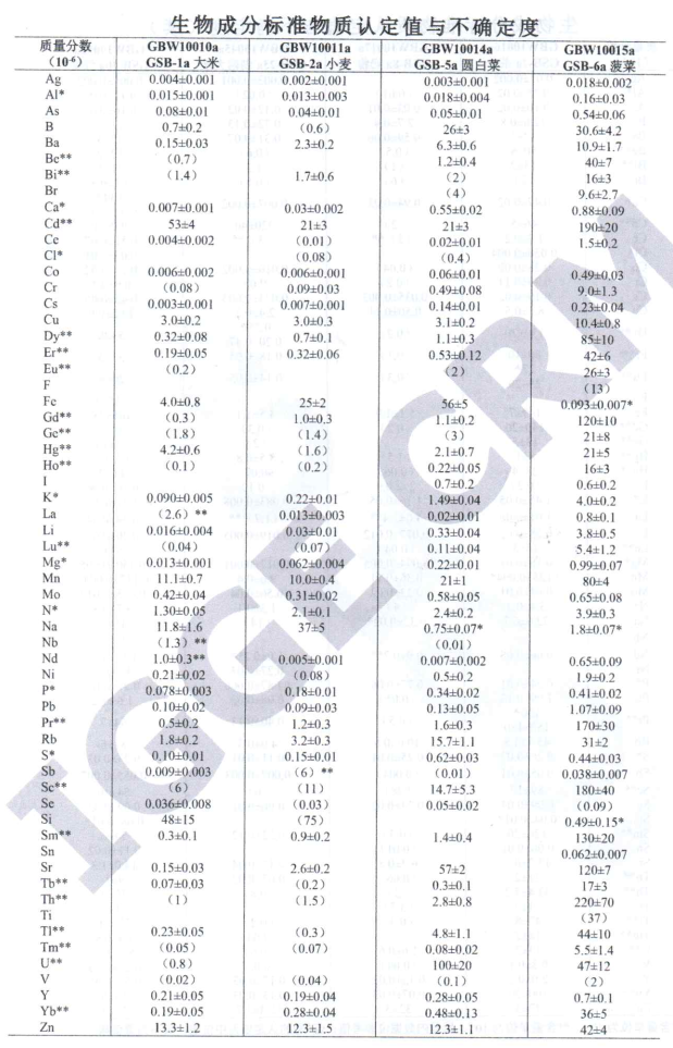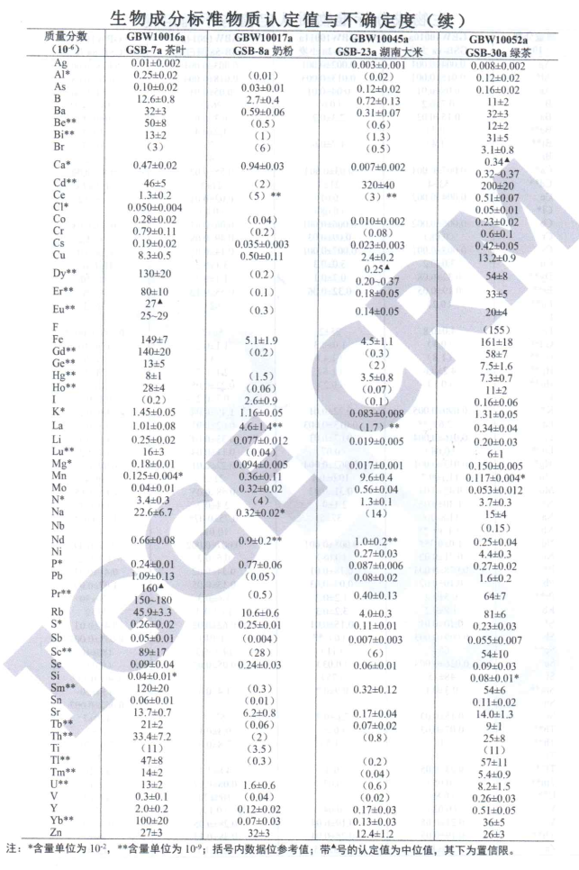 本系列生物成分分析标准物质共8个,可供食品与保健品卫生安全评价及农业环境地球化学调查与评价等生物样品成分分析用作量值和质量监控标准。