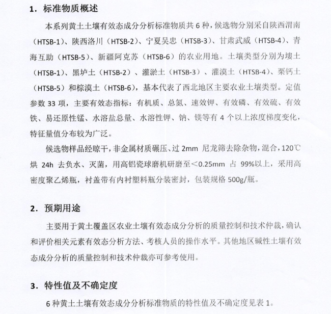 GBW07493(HTSB-1)-GBW07498(HTSB-6)有效态土壤样品