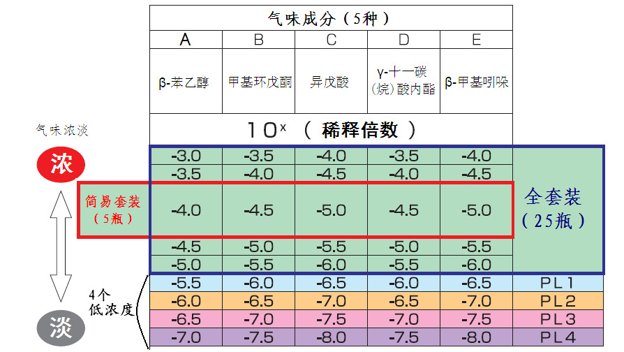 | 229231 | JPDL-OD2032-01 | 标准臭液、嗅液、嗅觉测试标准液、嗅辨员挑选(β-苯乙醇(花香)、异戊酸(韩臭气味)、甲基环戊铜(甜锅气味)、γ-十-碳(烷)酸内酯(承熟水果香)、β-甲基吲哚(分臭气味)) | (气味、臭气、标准臭味) | 日本 | 5瓶(简易装)、25瓶(全套装) | 咨 询 |