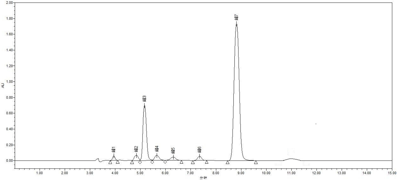 精密称取本品适量,用乙腈-四氢呋喃(1:1)混合溶液配制对照品溶液。以 1~8 峰面积之和计算。