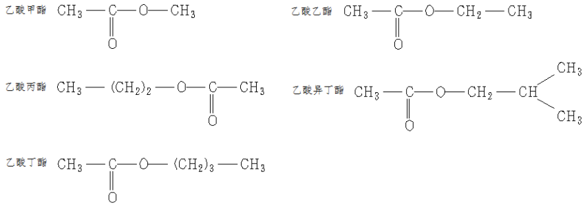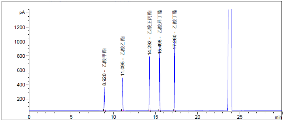 出峰顺序:乙酸甲酯、乙酸乙酯、乙酸丙酯、乙酸异丁酯、乙酸丁酯