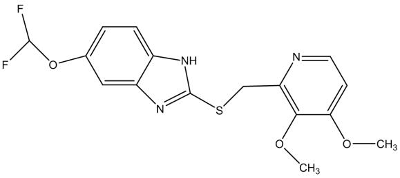 【用途】本品为泮托拉唑钠杂质 B,对应《欧洲药典》8.0 和 USP36 中5-(Difluoromethoxy)-2-[[(3,4-dimethoxy-2-pyridinyl)methyl]sulfanyl]-1H-benzimidazole),供 HPLC 法检查用。