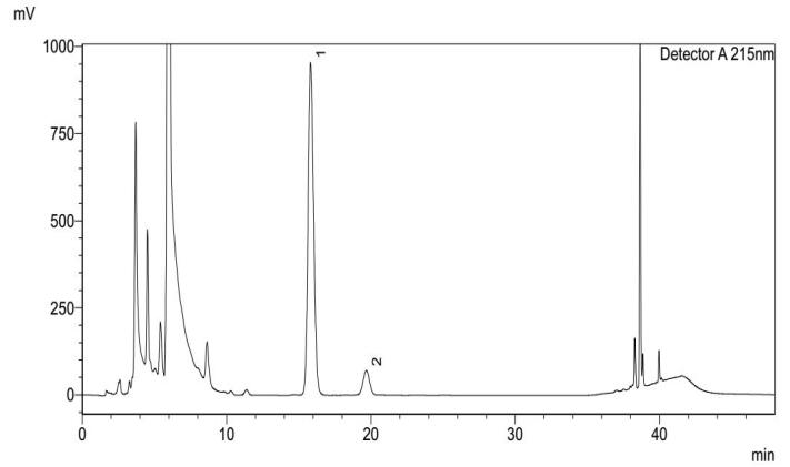 (1. 乙胺丁醇衍生物峰;2. 乙胺丁醇杂质Ⅱ衍生物峰)