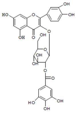 【用途】2’-O-没食子酰基金丝桃苷(2’-O-galloylhyperin)对照品系供局颁标准 WS-55288(B-0288)-2002 活血降浊口服液项下含量测定用。