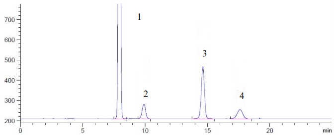 典型色谱图 1:果糖; 2:葡萄糖; 3:蔗糖; 4:麦芽糖