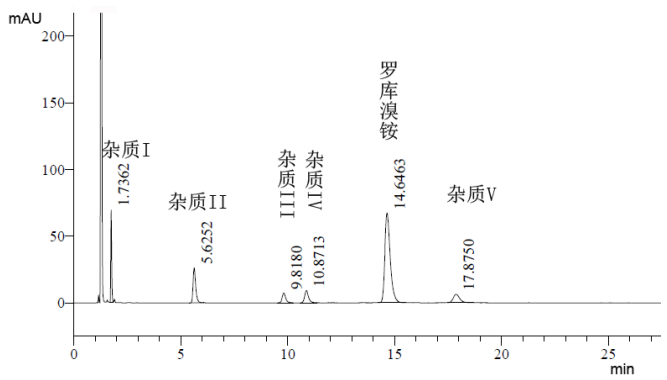 罗库溴铵及罗库溴铵杂质 I-V 混合溶液色谱图