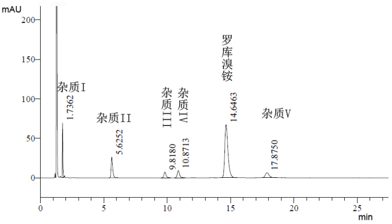 罗库溴铵及罗库溴铵杂质 I-V 混合溶液色谱图