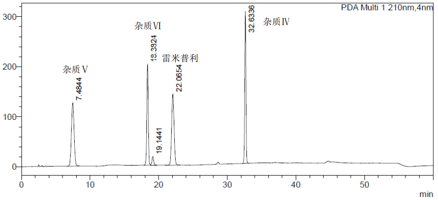 雷米普利,雷米普利杂质Ⅳ、Ⅴ、Ⅵ混合溶液分离度图谱