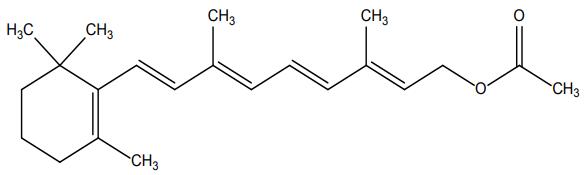 【特性量值】供 HPLC 法测定,每 1g 中含维生素 A 醋酸酯(C22H32O2 )341mg(99 万单位),其中含全反式维生素 A 醋酸酯 98.2%。