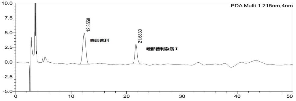盐酸喹那普利和喹那普利杂质Ⅰ混合溶液色谱图色谱柱:Shiseido Capcell Pak C18 MG 4.6×250mm,5um